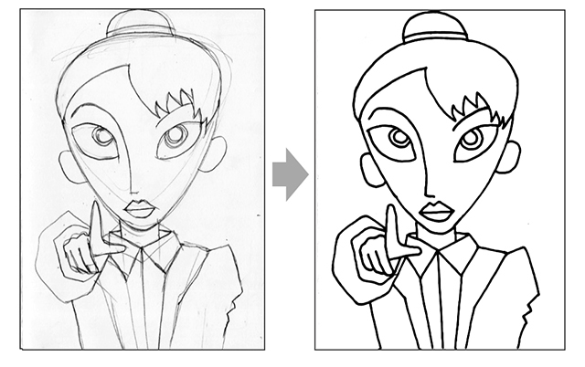 ループが閉じていること、下描きの鉛筆の線が完全に消えていることを確認します。