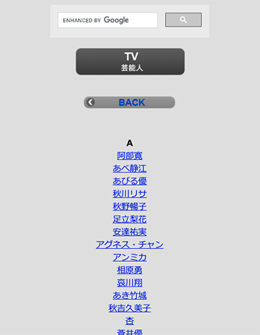 芸能人・音楽・お笑い・映画・文化・野球・サッカー・格闘技・ゴルフ ・ウインタースポーツ・その他のスポーツ・政治家・ビジネス・集合作品 の14のカテゴリーからアルファベット順の名前一覧から選ぶ |