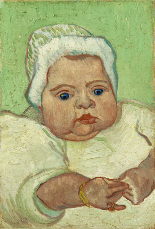 ゴッホが親しくしていた郵便局員ジョゼフ・ルーランの娘(当時生後数か月)の肖像画を描いた。ゴッホはルーラン一家を「現代の聖家族」のように捉えており、マルセルの肖像もその延長線にあるとしていた。